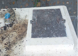 Nhận thấy mối nguy hiểm tiềm ẩn có thể xảy ra trong khi làm nhiệm vụ như trình bày trên (trơn trượt do bề mặt bể chứa bị đóng rêu, ngã cao, trượt chân té xuống bể chứa trong quá trình kéo phao... ở độ cao khoảng 4m so với mặt đất). Tôi xin đề xuất giải pháp thiết kế lan can cố định xung quanh khu vực nóc bể chứa để móc dây an toàn, lắp thêm lồng bao cầu thang leo nhằm đảm bảo an toàn cho nhóm công tác và nhân viên vận hành khi thao tác kiểm tra thiết bị trên bể chứa; lắp thêm cửa khóa chân thang phòng tránh những người không phận sự leo lên. Chi tiết như hình bên dưới.