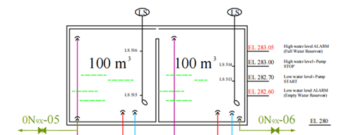 Hình 1: Cấu trúc của hệ thống cấp nước chữa cháy và nước sinh hoạt ở cao trình 280m